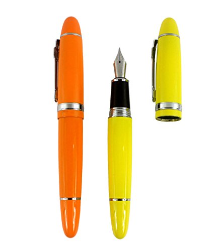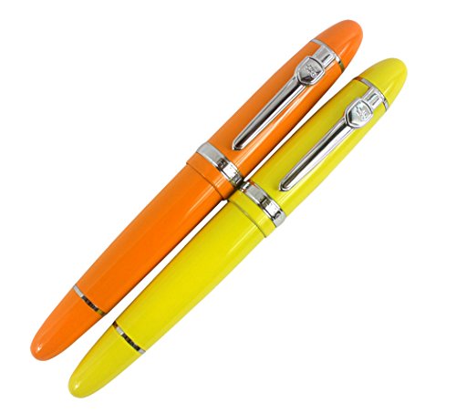 2 PCS Jinhao 159 Big Barrel Fountain Pens in 2 Colors(Orange, Yellow) with Transparent Pen Pouch