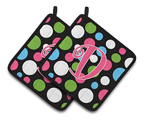 Caroline's Treasures Monogram Initial D Polkadots & Pink Pair of Pot Holders CJ1038-DPTHD, 7.5HX7.5W, Multicolor