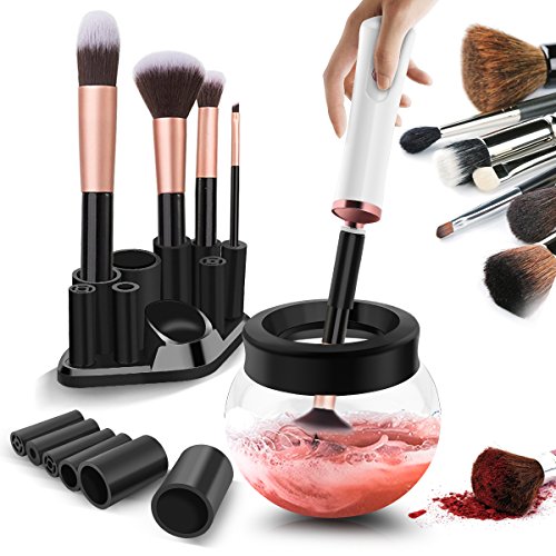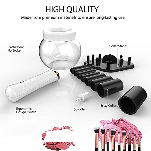 - ♥ Economical & Effective:Clean and dry all size makeup brushes thoroughly in just a few seconds. Eight different sizes of rubber holders fits all your makeup brushes perfectly, which improve your makeup experience and save your time and money.