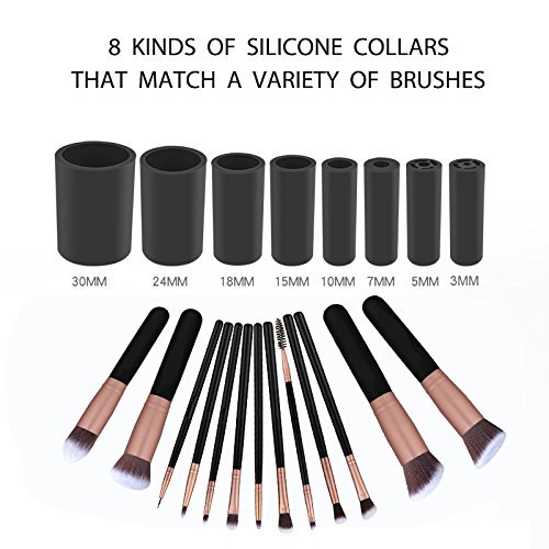 - ♥ High Quality:Made from premium materials to ensure long-lasting use. And it is nontoxic, environmental friendly and easy cleaning. It has 8 collars which fit for most makeup brushes with various sizes.