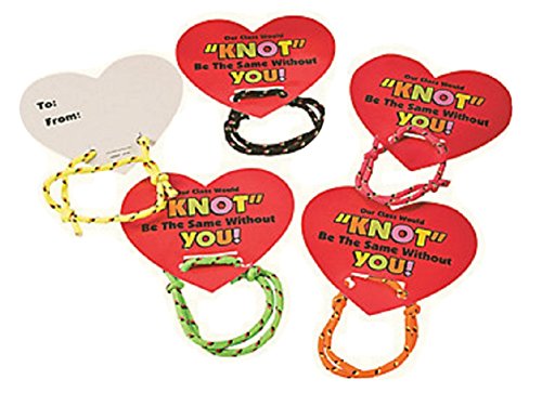 Studio : Oriental Traders Co Publisher : Oriental Traders Co Binding : Office Product Product Description Are you looking for the perfect giveaways for students during your classroom Valentine's Day party? Spread the love with these Valentine Knot Bracelets with Cards. Printed with "Our class would knot be the same without you!", these valentine cards feature a To:/From space on the back. Students will love sporting these adjustable nylon bracelets! 0