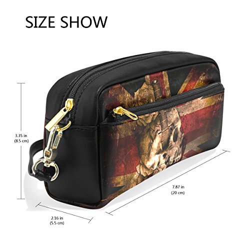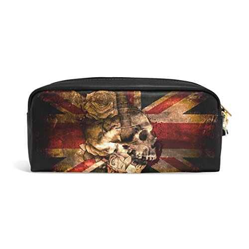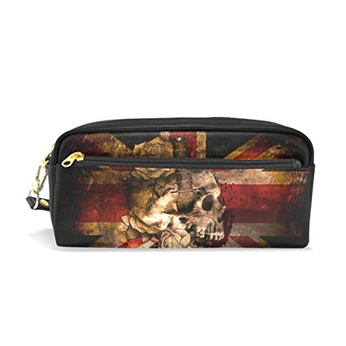 Hulahula UK Flag Skull Leather Student Pencil Case Cosmetic Bag Pen Makeup Pouch for Girl Boy