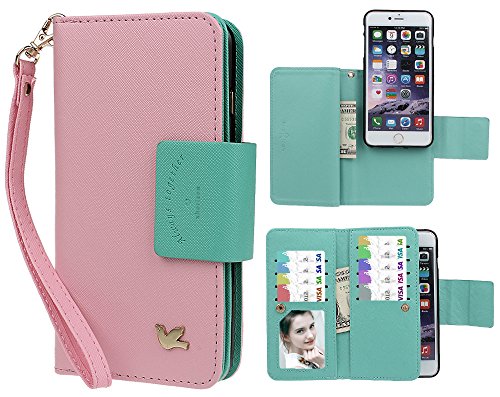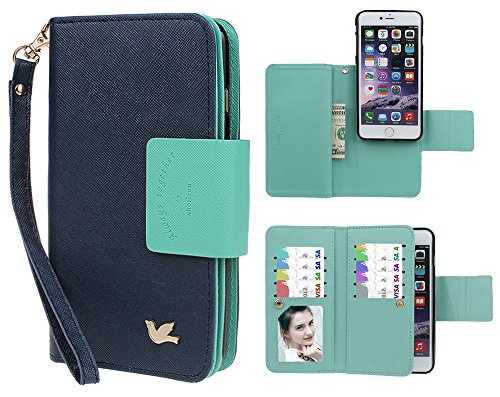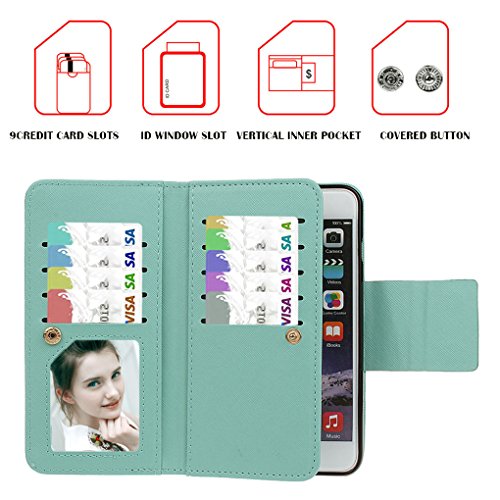 Wallet feature: the exterior detachable flip case with 9 card slots(one with clear window, suitable for holding a small photo) & 3 cash compartments (one hidden compartment on the back) to conveniently store ID card, credit cards, business cards, cash & some paper notes. With a wristlet lanyard to wear on the wrist.
