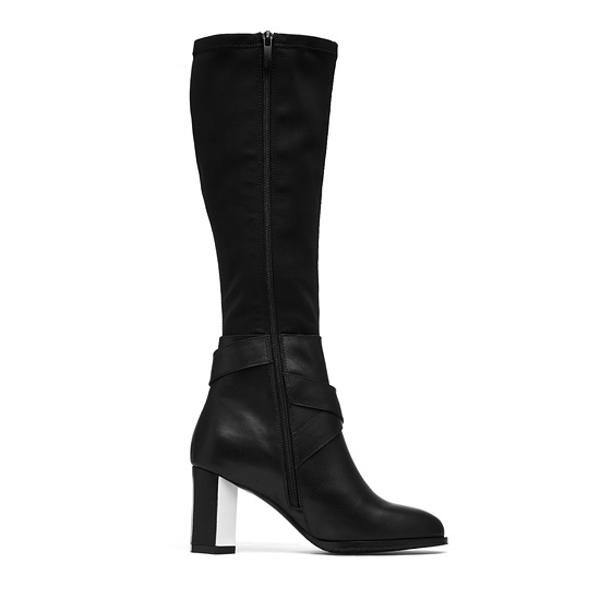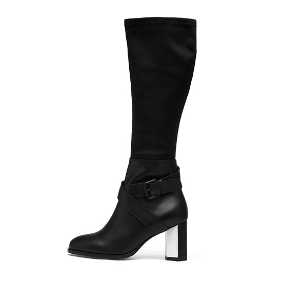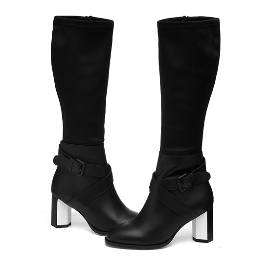 - 절개된 굽과 네오플렌 소재가 포인트인 롱 부츠.