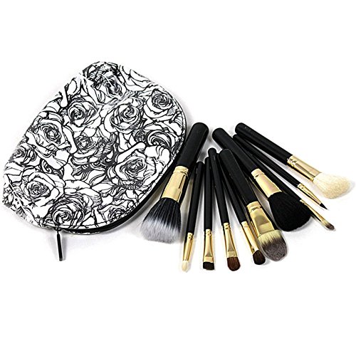 RoseFlower 10 Pcs Professional Cosmetic Makeup Brushes Set - Essential Make Up Tools Kit for Professional as well as Personal Use