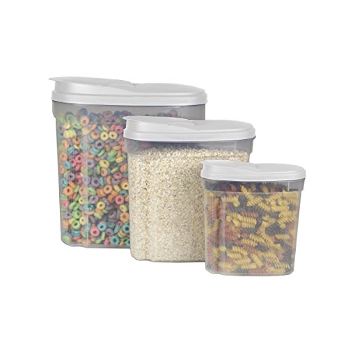 Plastic 3 Piece Cereal Container Dispenser Set - BPA FREE - Dry Food Storage Containers