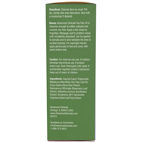 TIMELY RESULTS. Within 28 days Advanced Clinicals tea tree oil improves the appearance of rough texture, cracked skin and unsightly bumps. Miracle oil helps reduce the appearance of blemishes, acne, age spots, and helps hydrate cracked irritated skin. Great for all skin types- sensitive, oily, normal.