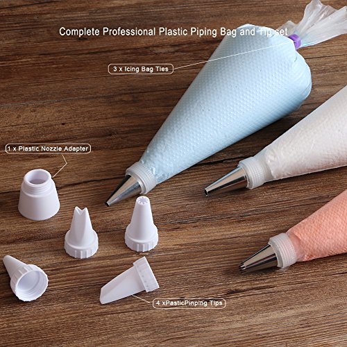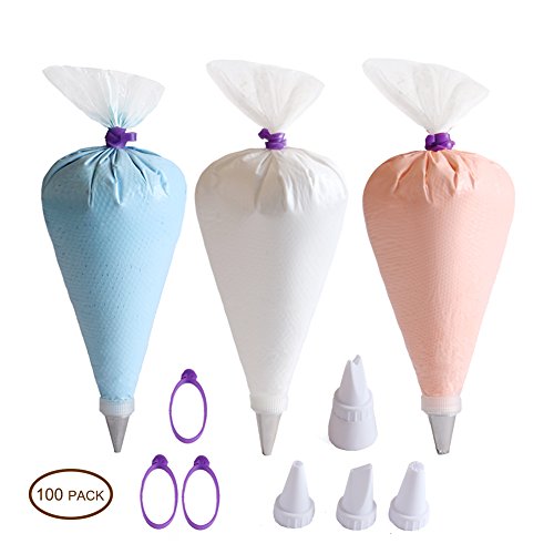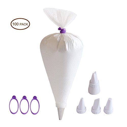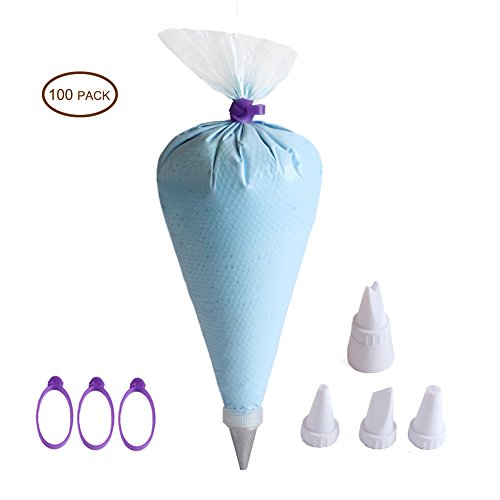 Chiyan Pastry Bag - 100 Pieces 16 Inch [Extra Thick] Disposable Piping Bags Set with 4 decorating tips and 3 Bag Ties for Cake Decorating Royal Frosting - By Chiyan