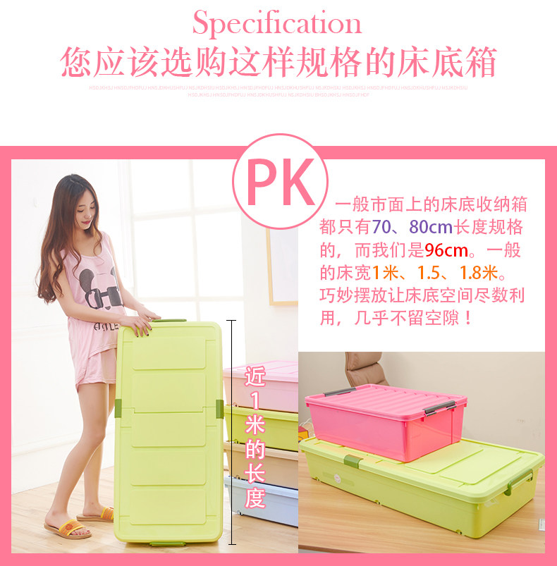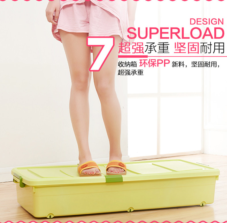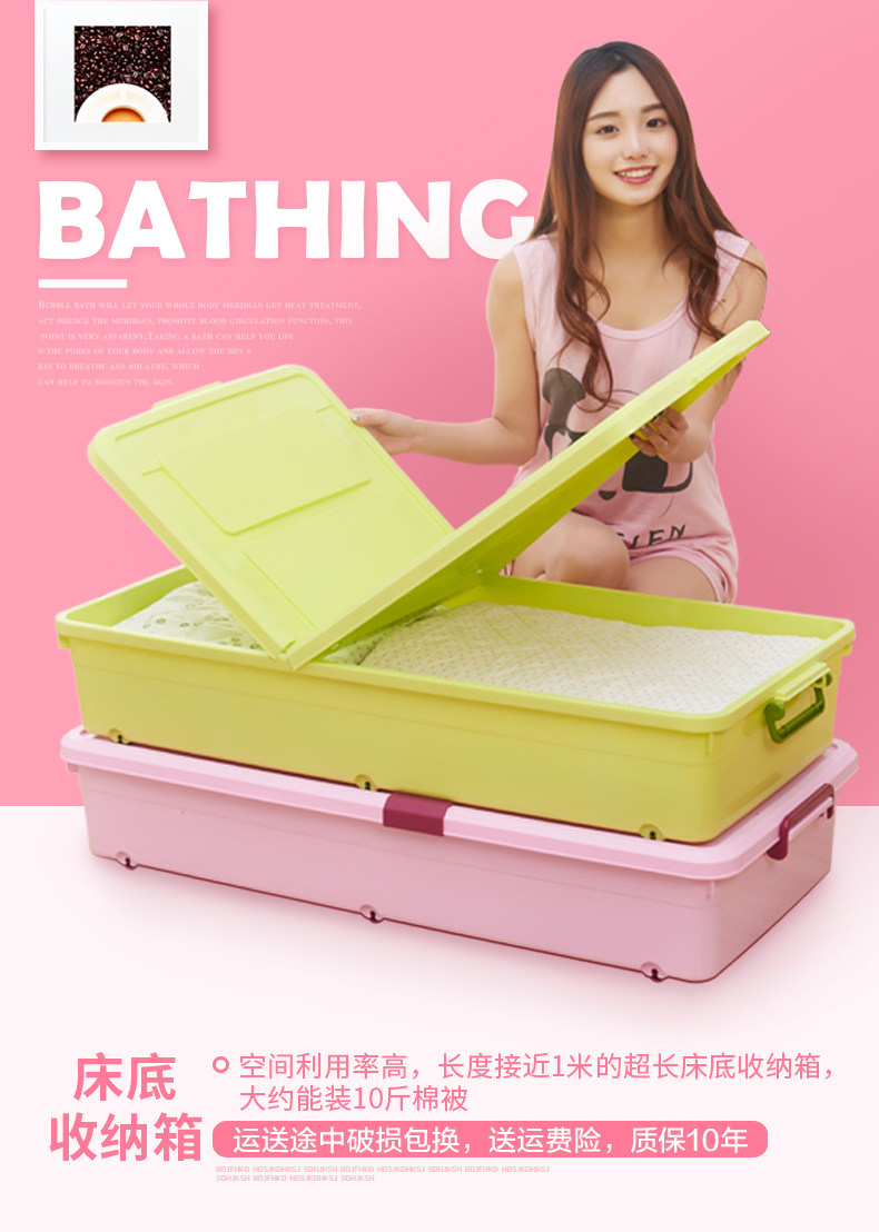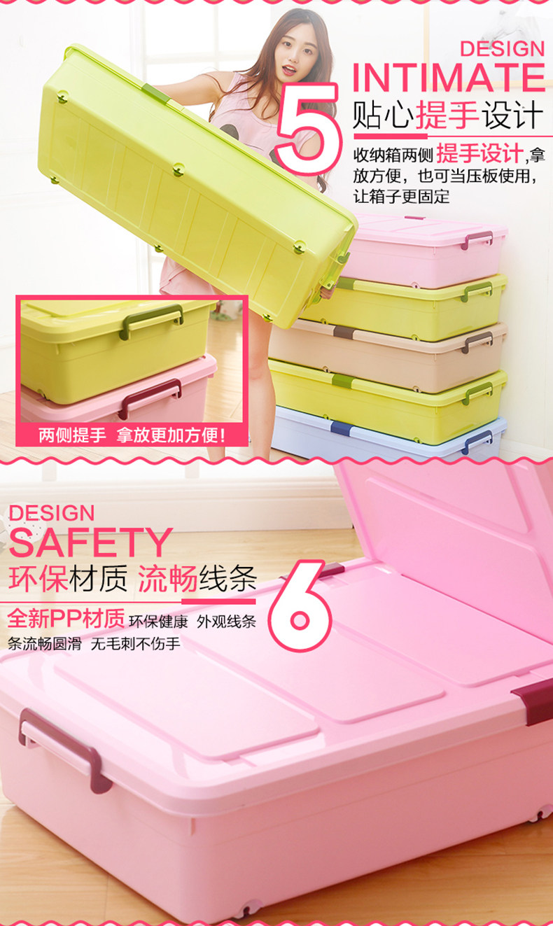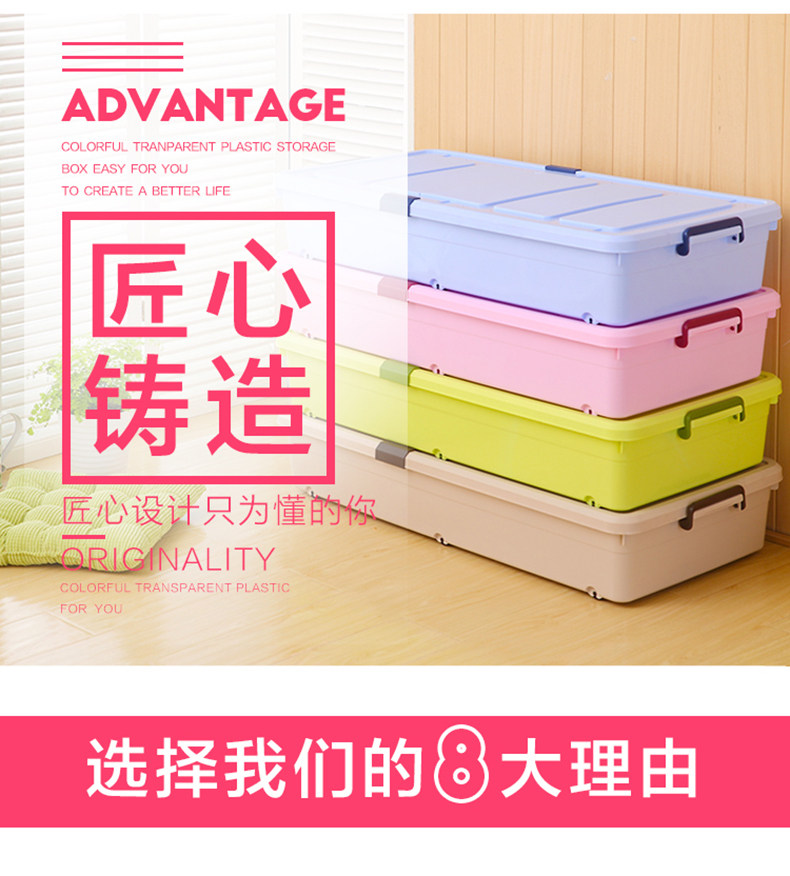 1个箱子大约能装10斤厚棉花被、多条丝棉被、20多双鞋子!超越压缩袋!书本、衣服、玩具,通通有序的塞进我们的床底、夹缝空间,纳得漂亮,会让你有惊喜收获!