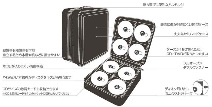●CD/DVDをスタイリッシュに収納できるCD/DVDファスナーケース