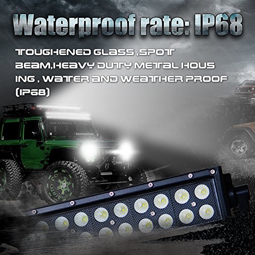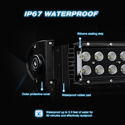 Studio : Nilight Publisher : Nilight Binding : Tools Home Improvement Product Description SPECIFICATION: LED Power: 312W (104PCS 3W High Intensity LEDS) Input Voltage: 9-30V DC Beam Type: Flood Spot Combo Beam Waterproof Rate: IP67 LED Color Temperature: 6000K-6500K Working Lifespan: over 30,000 hours Working Temperature: -40~ 85 degrees Material: 6063 Aluminum Profile, Stainless Steel Bracket, PC Lens Compatible with both 12V and 24V vehicle The glass surface is made of Toughed Glass Lens with high light transmission. Suitable design for heating elimination. High performance of waterproof, dustproof, shockproof.