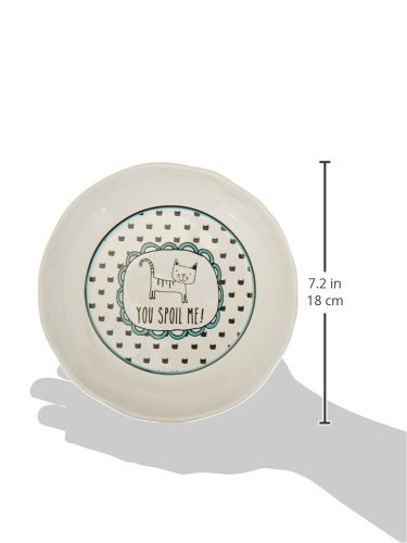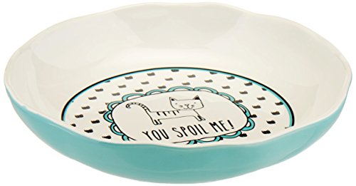 Pavilion Gift Company It's Cats & Dogs-"You Spoil Me!" Shallow 2" Tall Ceramic Cat Food and Water Dish, Aqua Blue