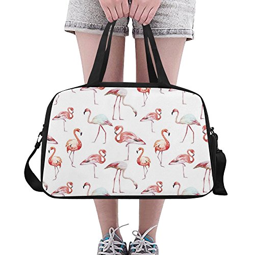 (InterestPrint)/Accessories/Luggage, Bags Travel/DIRECT FROM USA/InterestPrint Travel Duffel Tote Bag with Shoes Compartment for Women Men Flamingos Bird, Wat...