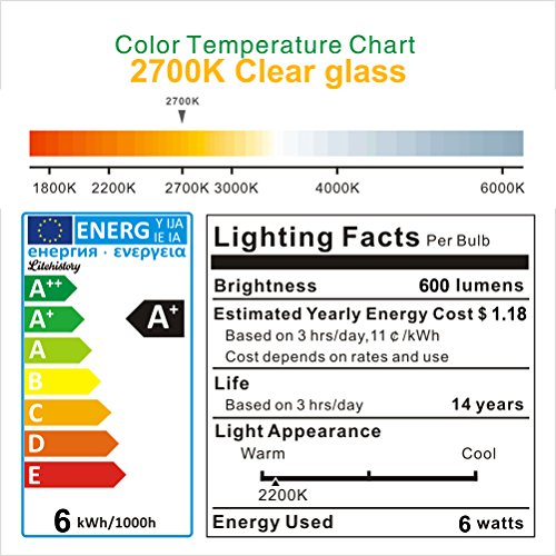 - Energy-saving: 6W replaces 60W incandescent bulb, energy saving up to 93%