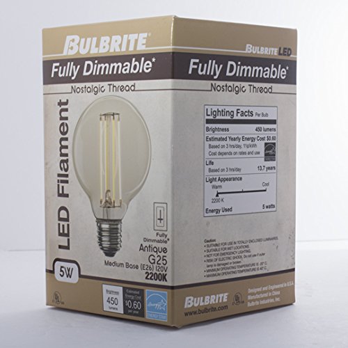 Bulbrite LED5G25/22K/FIL-NOS/2 5W LED Nostalgic Filament G25 Bulb, Medium (E26) Base, Antique Finish