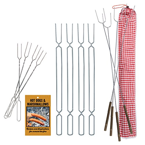 -. Feature : Includes 12 hot dog & marshmallow roasting forks and cotton gingham storage bag / Includes 64 page Hot Dogs & Marshmallows recipe book / Chrome plated metal forks range in size from 20" - 34" / Great for backyard parties / Made by Rome, a specialist in around the fire fun since 1964