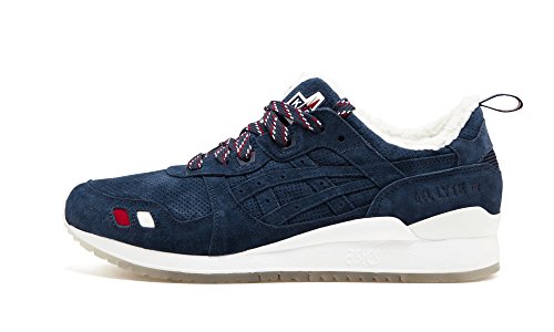 Binding : Apparel Product Description KITH leader and sneaker collab extraordinaire Ronnie Fieg got cozy with Moncler and ASICS for winter 2017 with a special edition of the GEL-Lyte III. The famous split-tongued runner thata€TMs already had many notable versions produced by Fieg throughout the years gets one of its most premium remodels yet, with the advantage of the high-end outerwear labela€TMs sherpa fleece lining. The Ronnie Fieg Moncler ASICS GEL-Lyte III collab was released in three colorways of light tan, red, and navy blue suede referencing Monclera€TMs signature color scheme. The navy blue colorway available here also features striped laces, red and white toe detailing, and an icy clear outsole with dual Kith and Moncler branding visible underneath. With a refined look outside and a plush fleece interior, the cozy KITH x Moncler x ASICS GEL-Lyte III will keep you warm in style all winter long. 0