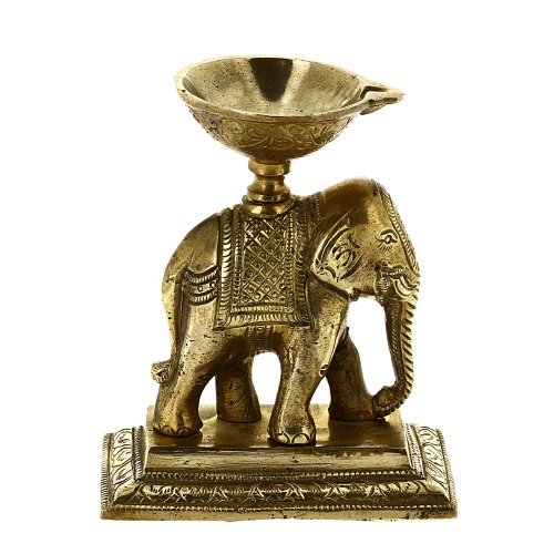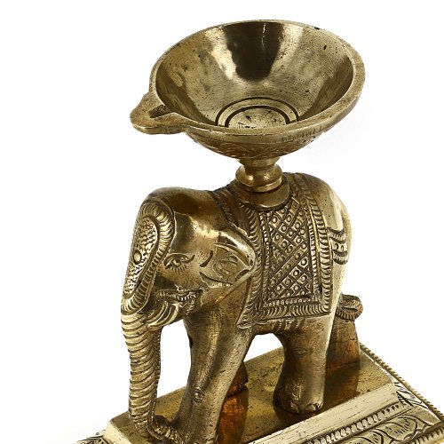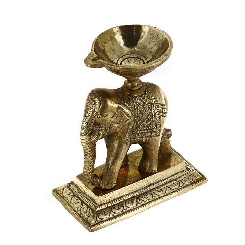 Elephant Oil Lamp Sculpture and Statue in Brass