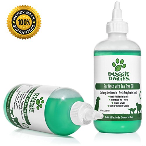 -. Feature : 8 FL OZ, VETERINARIAN FORMULATED PET EAR DROPS, SAFE FOR ROUTINE USE: Our dog ear cleaner works great for cats too! Doggie Dailies ear wash is formulated using an effective blend of Aloe Vera, Tea Tree Oil, Witch Hazel, and Echinacea that work together to safely loosen and remove dirt, ear wax and, debris from your pet's ears leaving them clean, fresh, and feeling good. Doggie Dailies ear treatment for dogs and cats is safe to use routinely depending on your pet's needs / PET EAR WASH THAT'S EASY TO USE, HAS A FRESH & PLEASANT SCENT, AND WILL NOT BURN OR STING: Doggie Dailies ear cleaning solution for dogs and cats has a light and pleasant scent that will not overwhelm you or your pet. Each bottle comes with an easy-to-use applicator tip that makes administering the ear drops and cleaning your pet's ears much easier. Your pet will love our ear wash too because our special formula soothes their ears and will not burn or sting / PERFECT EAR CLEANING SOLUTION TO MAINTAIN YOUR PET'S EAR HEALTH & CLEANLINESS: Dogs and puppies of all sizes love our dog ear cleaner, and cats do too! No more irritated, smelly, itchy ears that you and your pet have to deal with. Help prevent yeast infections and ear mites and bring your pet some relief with an ear treatment for dogs and cats that actually works. Order your bottle of Doggie Dailies ear wash now, RISK FREE! / MADE IN THE USA, FDA REGISTERED FACTORY, EVERY BATCH TESTED BY INDEPENDENT LAB: Doggie Dailies ear cleaner for dogs and cats is made in the USA in our FDA registered factory that gets inspected annually by APHIS. Every batch of our natural ear cleaning solution is tested and certified safe by an independent lab before it is distributed / GREAT CUSTOMER SERVICE, 100% MONEY BACK GUARANTEE + FREE BONUS EBOOK: Your happiness is our top P.R.Iority. If you are not satisfied with our product or service we'll provide you with a full refund and ensure we resolve any issue to your complete satisfaction. As a BONUS, you'll get a copy of our exclusive eBook, "Common Threats To Your Dog's Health (and what to do about them)" delivered to your inbox immediately after you purchase