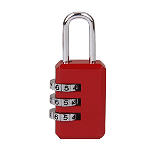 -. Title : 3 Dial Combination Lock Cabinet Suitcase Travel Bag Padlock Red