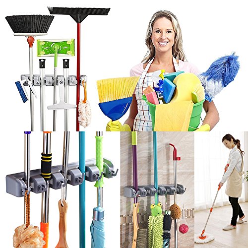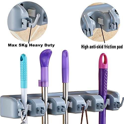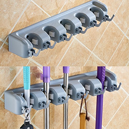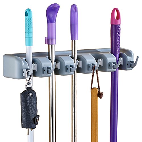 Mop and Broom Holder | garage storage | Mounted & Garden Tool Organizer | Ideal Broom Hanger for Kitchen,Bathroom and Laundry Room(5 Position 6 Hooks)