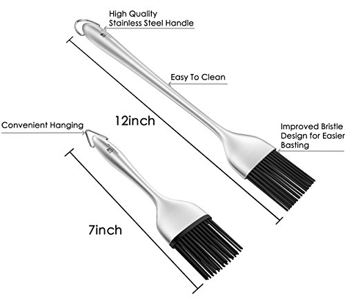 E LV BBQ Grill Cooking Pastry Basting Brush Set of 2, Stainless Steel Handle with Silicone Bristles for Kitchen [12 Inch and 7.0 Inch]
