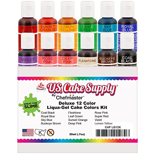 12 Color Food Coloring Liqua-Gel Decorating Kit – U.S. Art Supply Food Grade, 0.75 fl. oz. (20ml) Bottles, Non-Toxic Primary Popular Colors