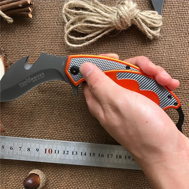 | [해외] 여우 F91 Karambit 접는 칼, 반 블레이드 선물 전술 포켓 나이프, 야외 접이식 블레이드 칼, 캠핑 폴더 칼 |