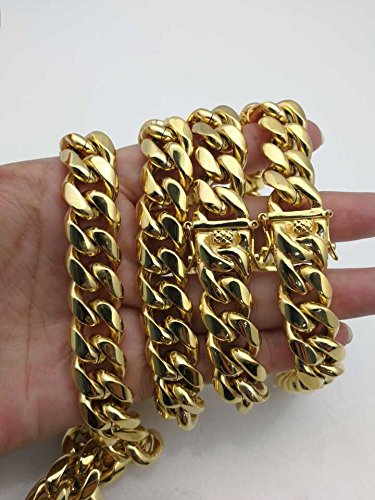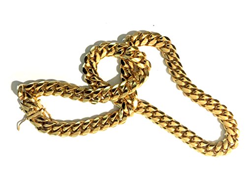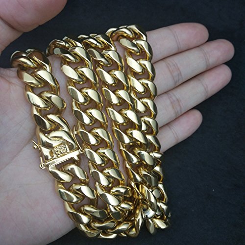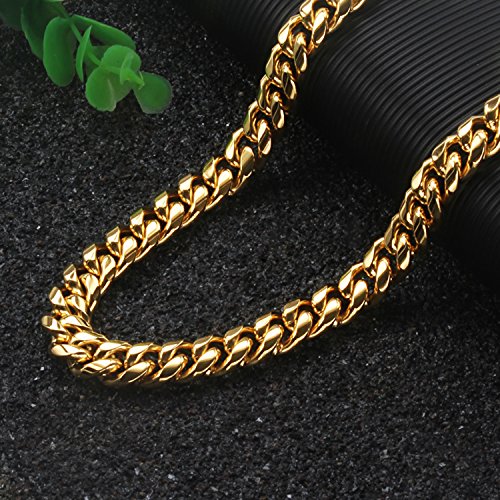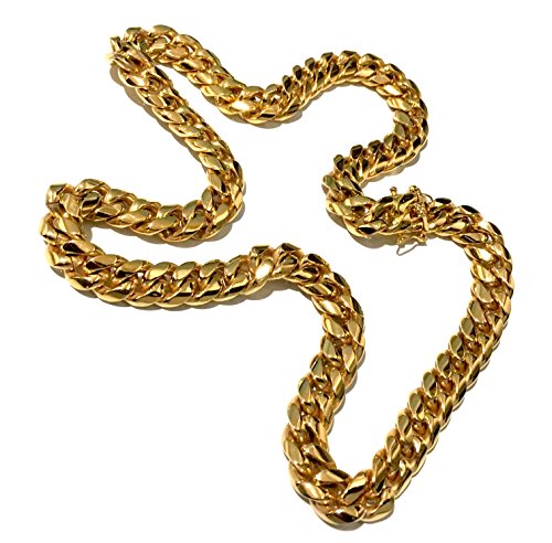 -. Feature : MADE IN USA . We are real people who use our own products every day. We cut no corners in our products, and deliver the perfect big Miami cuban link chains to make a perfect gift for your loved on for birthday, anniversary, seasonal gift, valentine. a gift to a loved one shouldn't be compromised. This is a perfect gift they will remember. / CHAIN IS HAND MADE AND THE LINKS ARE WELDED TOGETHER, THIS IS A ONE OF A KIND NECKLACE YOU WILL FIND ON THE MARKET FOR THIS PRICE, We only use 24k GOLD (THE PUREST form of gold which has a distinctive shinny pure gold ) instead of 10k or 14k! No cheap metals copper (turns green) or nickel which can irritate your Skin, This is a classic style. The cut is round, smooth and feels heavy and rich in one's hand. A touch of gold can add style to anyone's wardrobe. / WHILE OTHER GOLD PLATED CHAINS are cheap and fake looking; tarnish; cause skin rashes and are light weight, our Jewelry chains are made to last and have the right weigh, size and shine. look and feel like pure solid gold and are sold for a fraction of the cost. Nobody will ever know it's not a solid gold, and we won't tell if you won't. / WHY INVEST IN AN EXPENSIVE PURE 18K GOLD CHAIN, that you want have a peace of mind to wear anytime and place you feel like and threaten your life on top of that. Get the same head turns and compliments from wearing out big Miami cuban link chains you can actually match with any high end fashion jewelry for a reasonable price. / SAVE MONEY for more important things in your life, but you can wear this jewelry anytime anywhere without risk of loss or theft. Buy it ONCE and own it for a lifetime. if ANY DAMAGE OR WEAR occurs, we'll replace it FREE