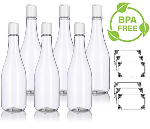 12 oz Clear PET (BPA Free) Plastic Refillable Rounded Bottle with White Disc Cap (6 pack) + Labels