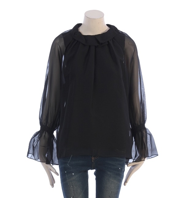 SATIN, 하늘하늘한 쉬폰 시스루로 여성스러운 느낌을주는 블라우스입니다