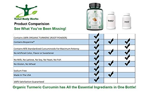 Organic Turmeric Curcumin with BioPerine Black Pepper Extract - 120 Veg. Capsules - Standardized to 95% Curcuminoids for Superior Absorption,...
