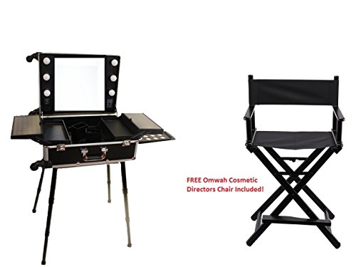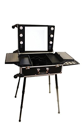 Professional Rolling Studio To Go Makeup Artist Station Portable Travel Vanity Trolley Wheels Train Case with LED Lights Mirror FREE CHAIR