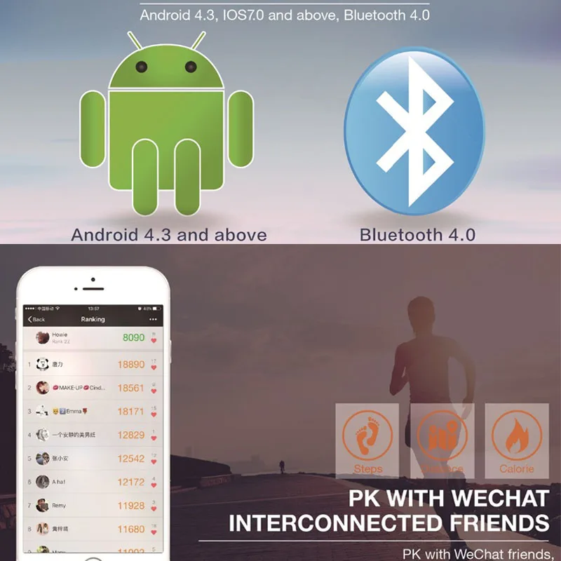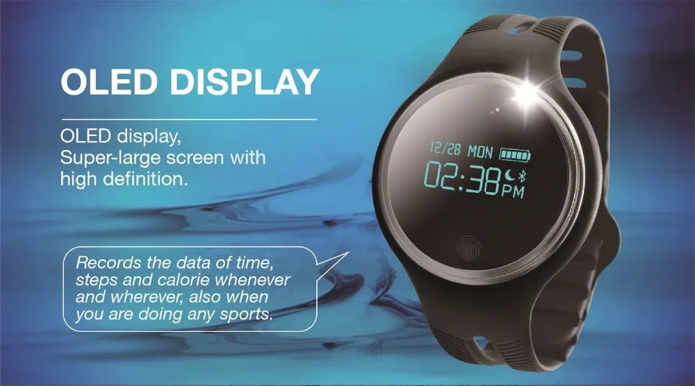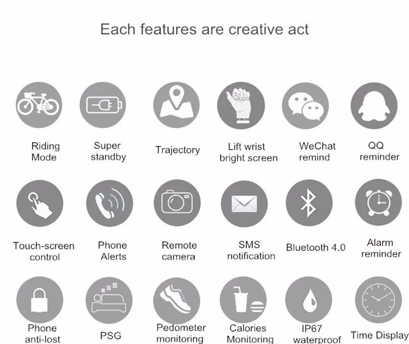 Function:Alarm Clock,Push Message,Passometer,Social Media Notifications,Message Reminder,Sleep Tracker,Call Reminder,Fitness Tracker