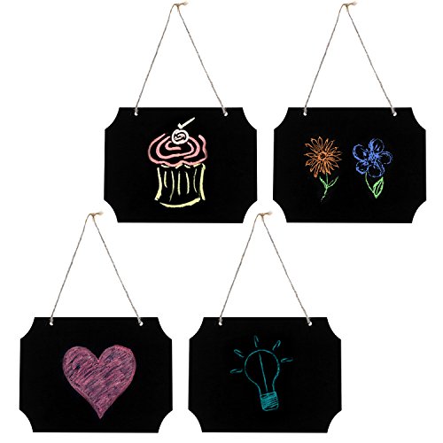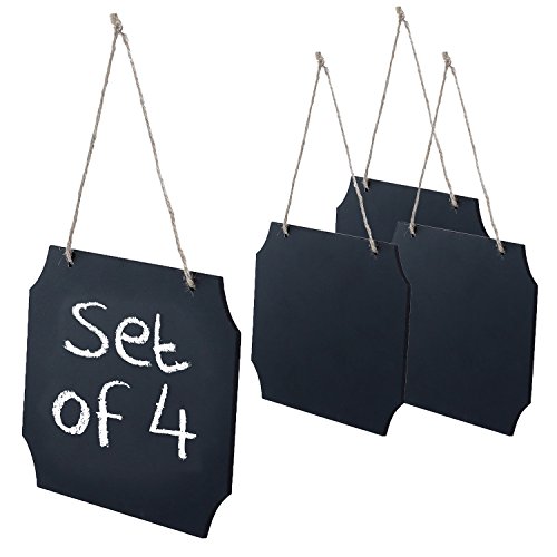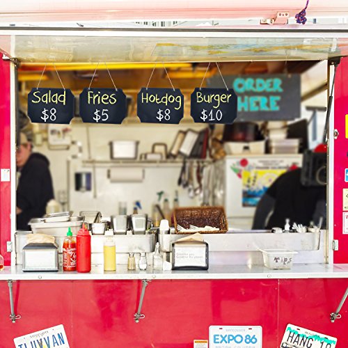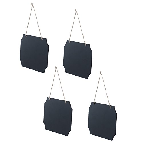 Set of 4 Rustic-Style Black Wood Erasable Chalk Memo Message Board Labels / Hanging Chalkboard Sign