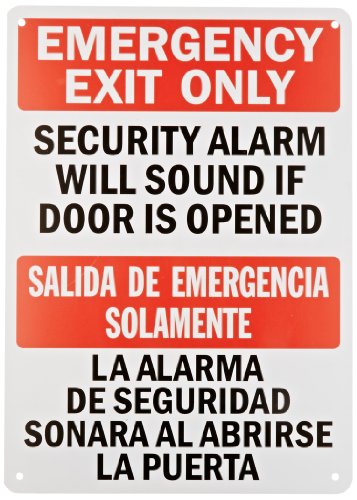 - Title : SmartSign Plastic Sign, Legend "Emergency Exit Alarm Sounds if Door Opened", Bilingual Sign, 14" high x 10" wide, Black/Red on White