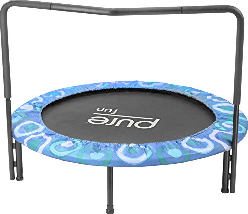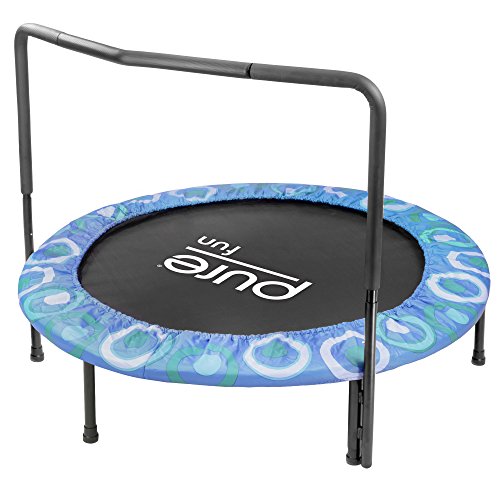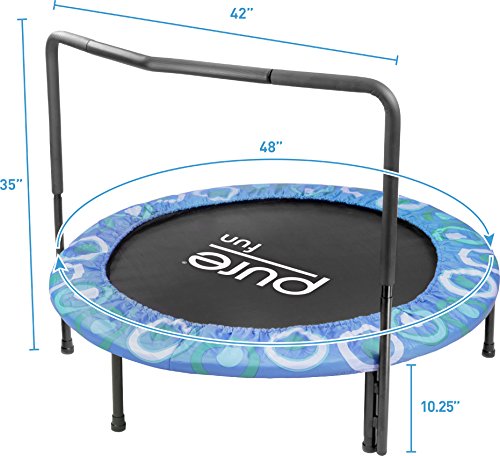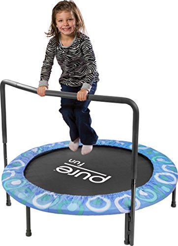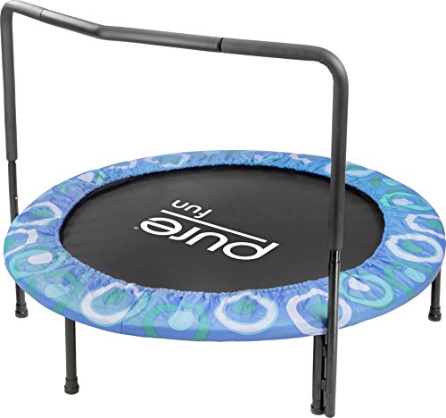 Provide your kids with hours of play and exercise with the Pure Fun 48" super jumper kids trampoline. The super jumper offers a great way for your kids to stay fit, build motor skills and burn off some of that extra energy while having fun. The 48" jumping surface and high weight limit is another added benefit for this trampoline to grow with your kids. The super jumper also comes with a padded handlebar for stability and balance helping to build coordination and motor skills. This trampoline is recommended for ages 3 to 10 and safety rated up to 100lbs. Benefits: kids love jumping on trampolines and they will continue for hours without realizing they are getting a really good workout. Trampolines provide a safe and effective form of exercise for your kids that has been proven to build stamina, improve coordination, flexibility, agility, and balance. Trampoline exercise can benefit all kids, even those with no particular athletic experience or involvement in sports; jumping is as natural as walking. On the other hand, for those kids who may already be involved in other sports, trampoline exercise can improve basic fitness as well as enhance skills and abilities required by almost every other sport.Feature
