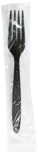 Daxwell Black Plastic Full-Size Heavy Weight Fork, Individually Wrapped (Case of 1000)