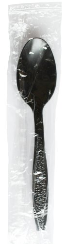 Daxwell Black Plastic Full-Size Heavy Weight Tea Spoon, Individually Wrapped (Case of 1000)
