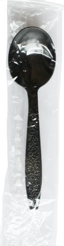 Daxwell Black Plastic Full-Size Heavy Weight Soup Spoon, Individually Wrapped (Case of 1000)