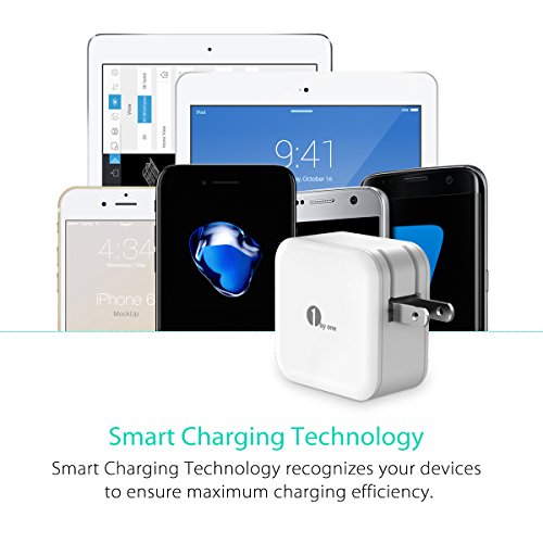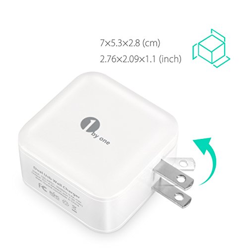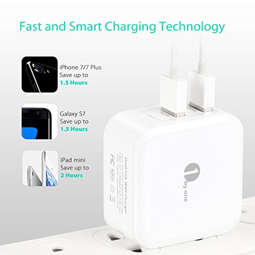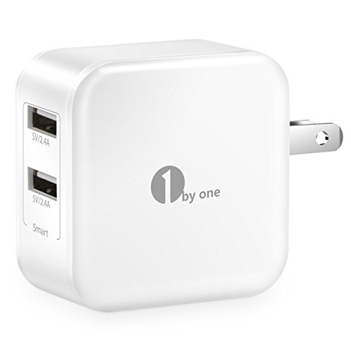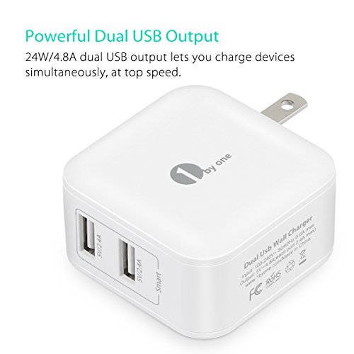 1byone 24W 2.4A Dual USB Wall Charger with Smart Charging Technology for iPhone, iPad, Samsung Galaxy, HTC, Nexus, Moto, Blackberry, and More - White