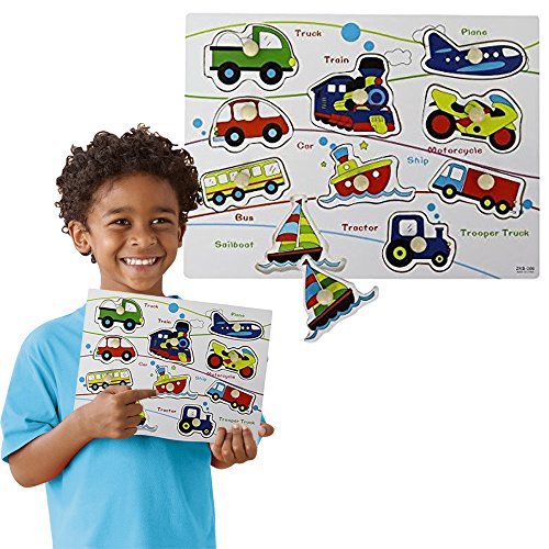 -. Binding : Toy -. Brand : Toy Cubby -. EAN : 0641938541366 -. Feature : 1 set Wooden Pegged Vehicles Puzzle Board. / Board measures 12 x 9 inches with 2 to 4 inches vehicles wooden puzzle pieces. / Helps your children to be familiar with vehicle. Features printed name of the vehicle next to each vehicle pieces. / Promotes the development of your child's hand-eye, fine motor and visual perception skill. / For kids 3 - 8 years old. -. IsAdultProduct : 0 -. ItemPartNumber : TC466 -. Label : Toy Cubby -. Manufacturer : Toy Cubby -. MPN : TC466 -. PackageQuantity : 1 -. PartNumber : TC466 -. ProductGroup : Toy -. ProductTypeName : TOYS_AND_GAMES -. Publisher : Toy Cubby -. Studio : Toy Cubby -. Title : Toy Cubby Kids Toddler Wooden Pegged Vehicles Puzzle Board Set- 2 to 4 inches vehicle puzzle piece -. UPC : 641938541366