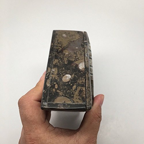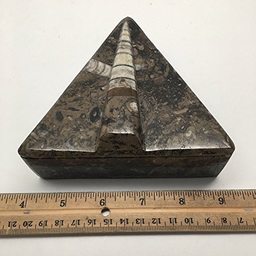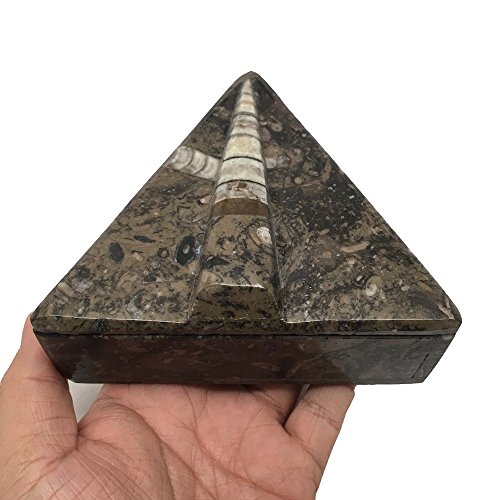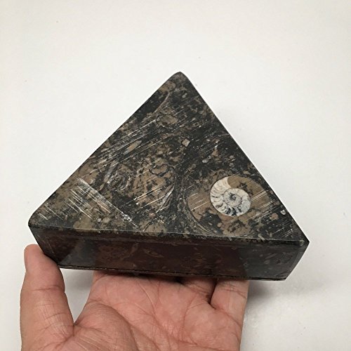 500 Grams Triangle Shape Brown Fossil Orthoceras Ammonite Jewelry Box From Morocco, MF430
