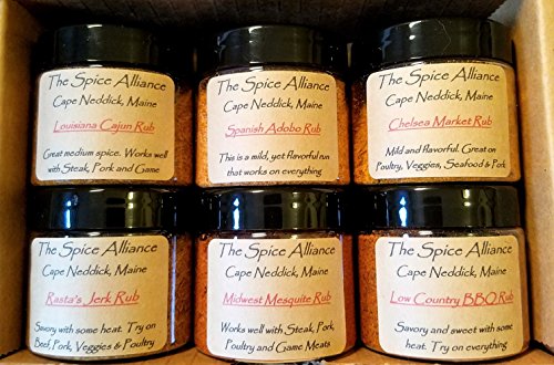 -. Binding : Misc. -. Brand : the spice alliance grilling rubs and seasonings -. EAN : 0634558080124 -. Feature : The set contains 6 two oz jars of in house made small batch rubs / We toast and grind all our spices to really tickle your taste buds / Makes a wonderful Housewarming or Hostess gift. Great for Dad, and mom too! Outstanding gift for your favorite "foodie" too!! / Doesn't get much fresher than this! / Small batch rubs ensure the freshest ingredients -. IsAdultProduct : 0 -. Label : The Spice Alliance -. LegalDisclaimer : Disclaimer: Any of our products may have been packaged on equipment that has been use to package peanuts and tree nuts -. Manufacturer : The Spice Alliance -. PackageQuantity : 6 -. ProductGroup : Grocery -. ProductTypeName : GROCERY -. Publisher : The Spice Alliance -. Size : 6 two ounce jars -. Studio : The Spice Alliance -. Title : Fire Up The Grill Rubs & Seasonings. Gift set of 6 two oz jars -. UPC : 634558080124