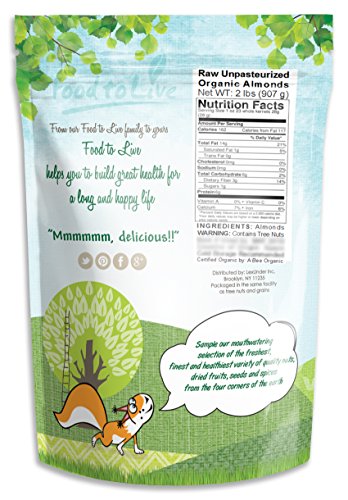 -. Title : Food To Live ® Organic Almonds (Raw, No Shell, Unpasteurized) (2 Pounds)