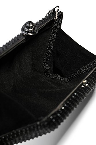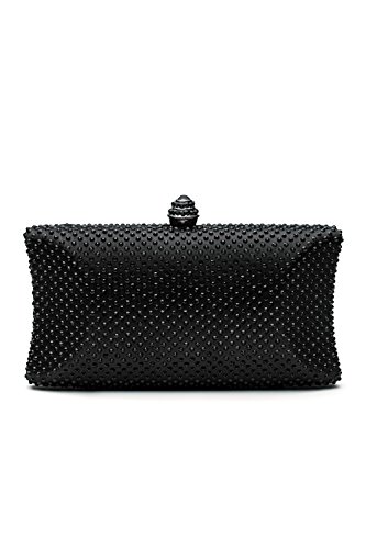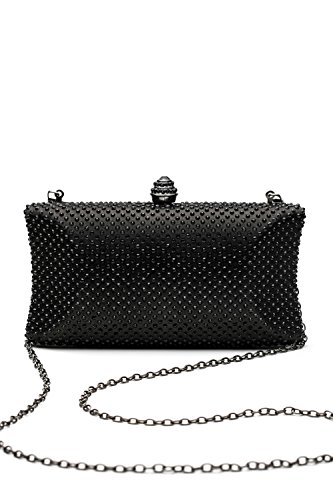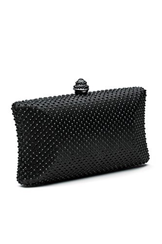 The sophisticated crystal studded clutch purse with satin base is just what you need for the perfect night out on the town. It will become a versatile and practical part of your party / cocktail / evening / prom outfit. The handbag boasts lustrous satin surface studded with small crystals. An elegant rhinestone top clasp closure adds the chic finishing touch to the evening bag. The clasp allows you to open and close your clutch smoothly and provides extra security for your belongings. The interior of the wallet features superb velvet lining with fine embroidery that hides seams. The hard box clutch comes with an optional crossbody chain strap. It gives you a choice to toss your purse over the shoulder and free your hands. Otherwise tuck the chain into the clutch. All metal parts have high resistance to rust, corrosion, oxidation and tarnishing so your minaudiere clutch will shine as a new one even after years in use. Don't be fooled into thinking that the evening purse is too tiny for your needs. Small and neat by sight the hard case is spacious enough to keep your essentials: a cell phone, home and car keys, ID card, credit cards, some money and make-up. As the clutch wallet fits the dimensions of most big screen smartphones, you can take your iPhone 6 Plus , Samsung S7 Edge or another gadget of the same size along with you.Feature