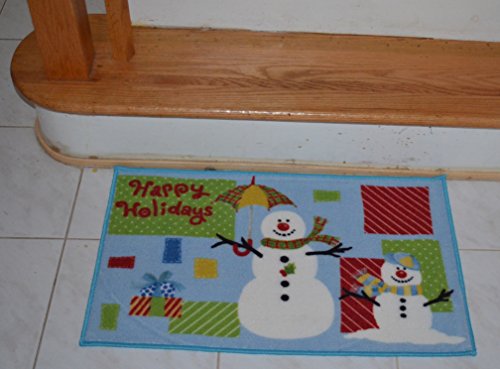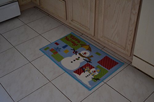 Christmas Non-skid Printed Kitchen Mat W/Latex Backing. 28" W x 17" D (Happy Holidays (Snowman))