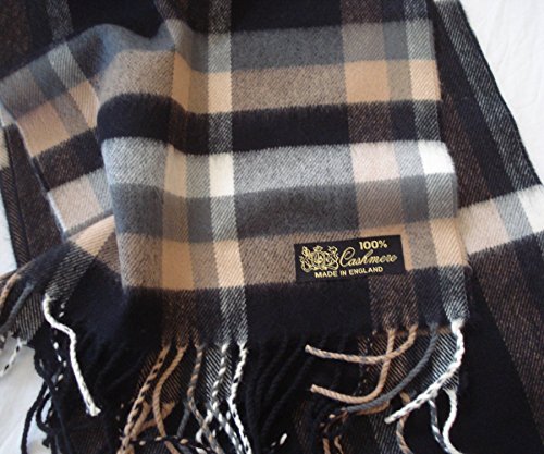 Product DescriptionThis is a black, camel and cream 100% scottish cashmere scarf measuring 6 feet long and one foot wide for men or women.0