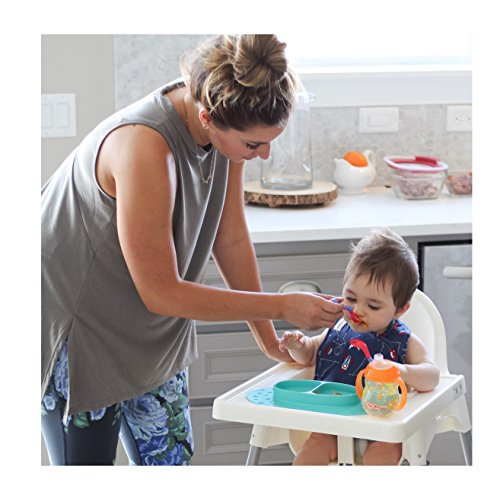 Built-in suction grip easily seals to tabletops and most highchairs, keeping it firmly in one place