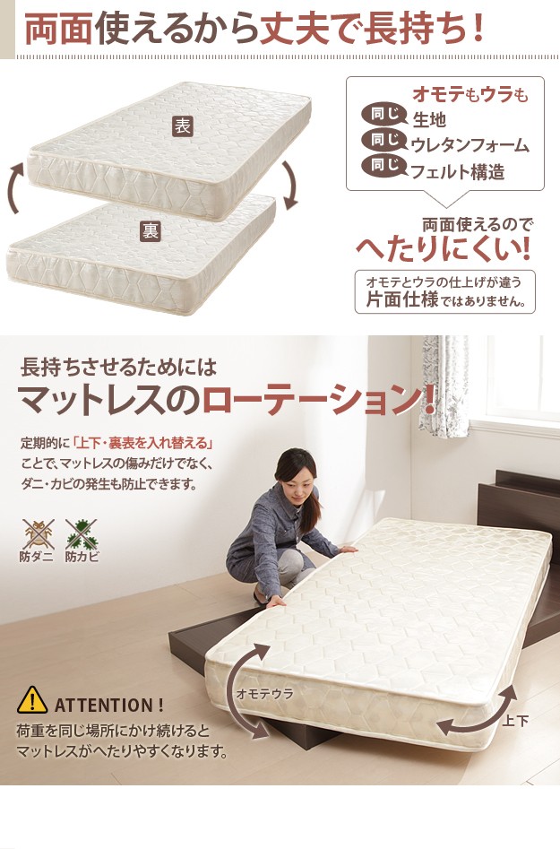 ●材質:側生地-ポリエステル100%、中身-ウレタンフォーム1cm、ポケットコイルスプリング高さ15cm・540個、不織布、フェルト